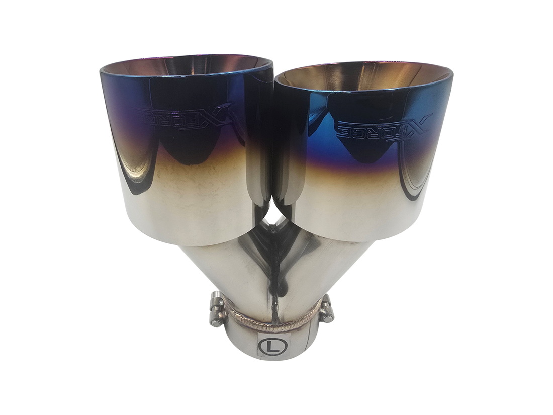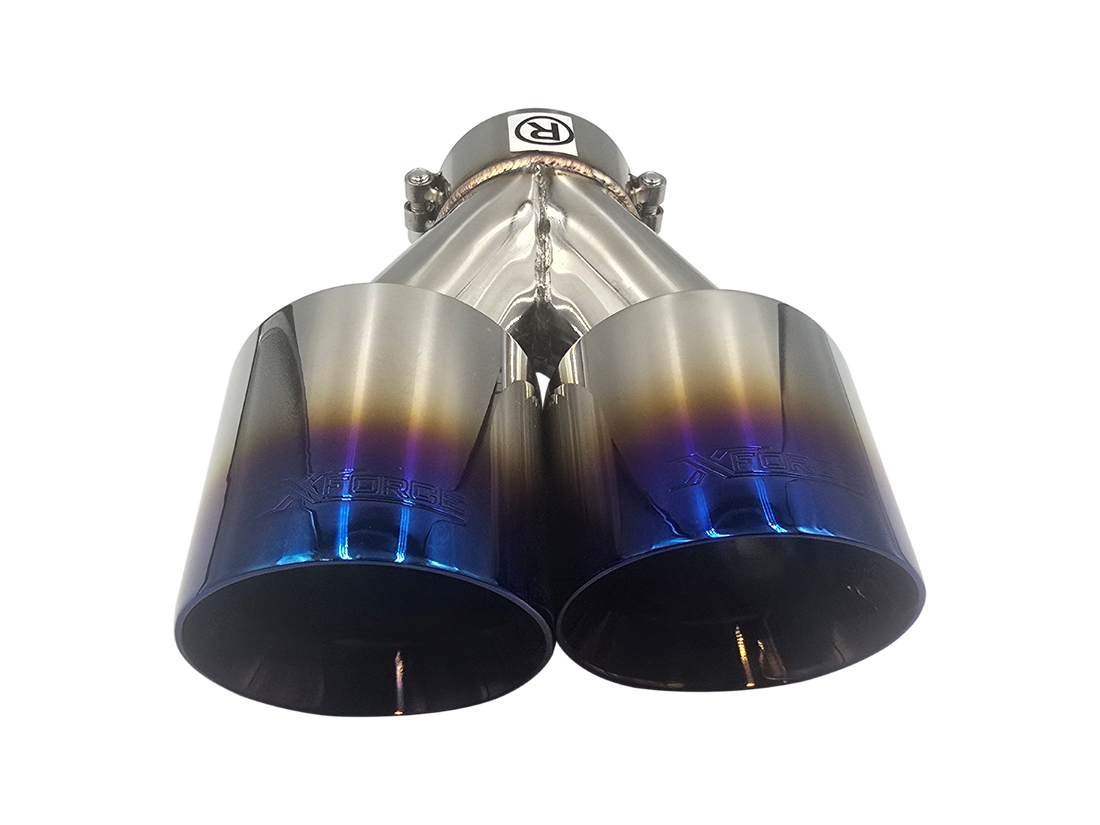 Twin 4Inch Round Burnt Blue Angle Cut Tip with 3Inch Inlet for Right Hand Side