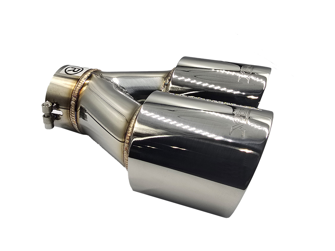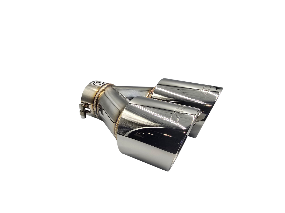 Twin 3.5" Round Angle Cut Tip with 2.5" Inlet. Take your ride to the next...