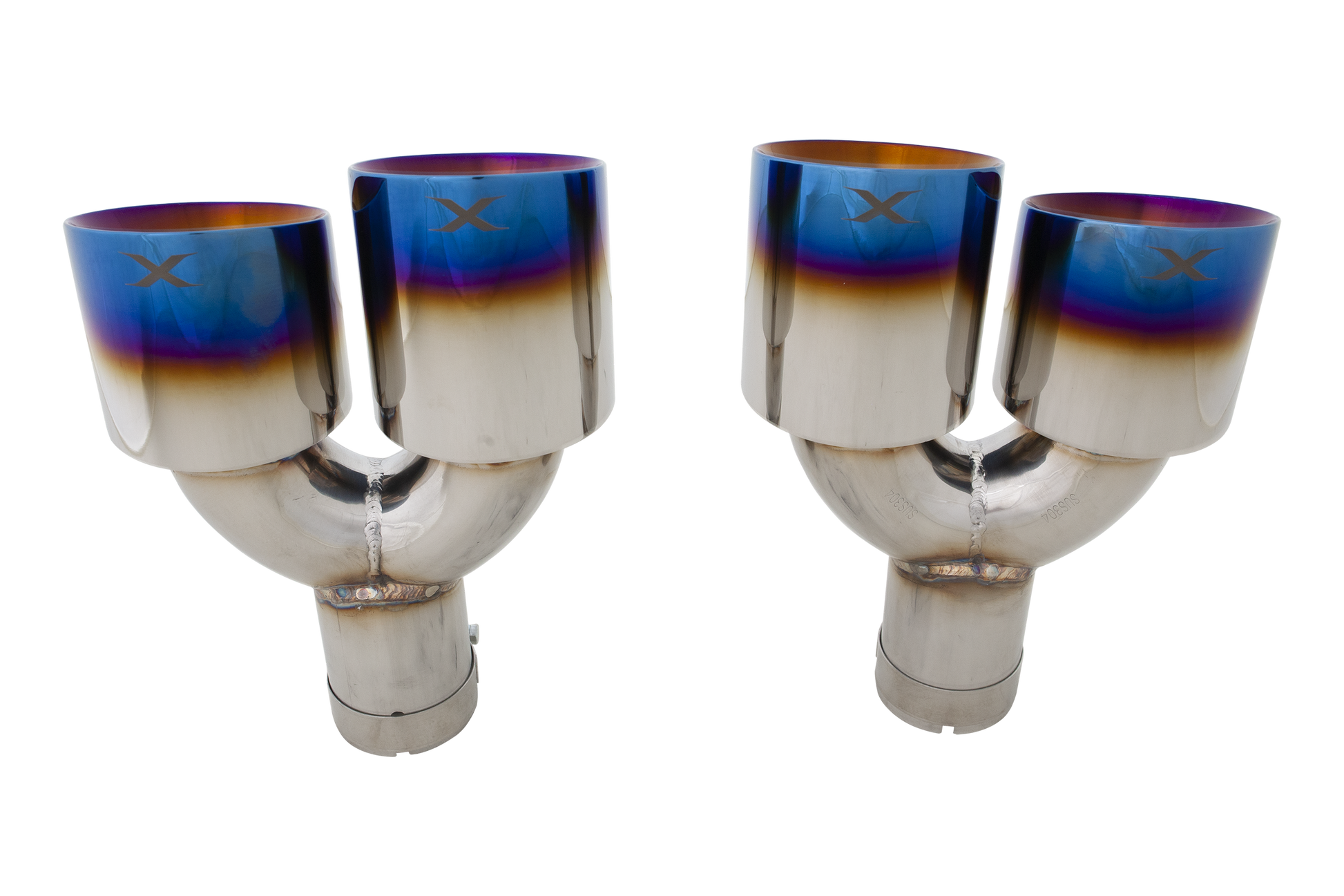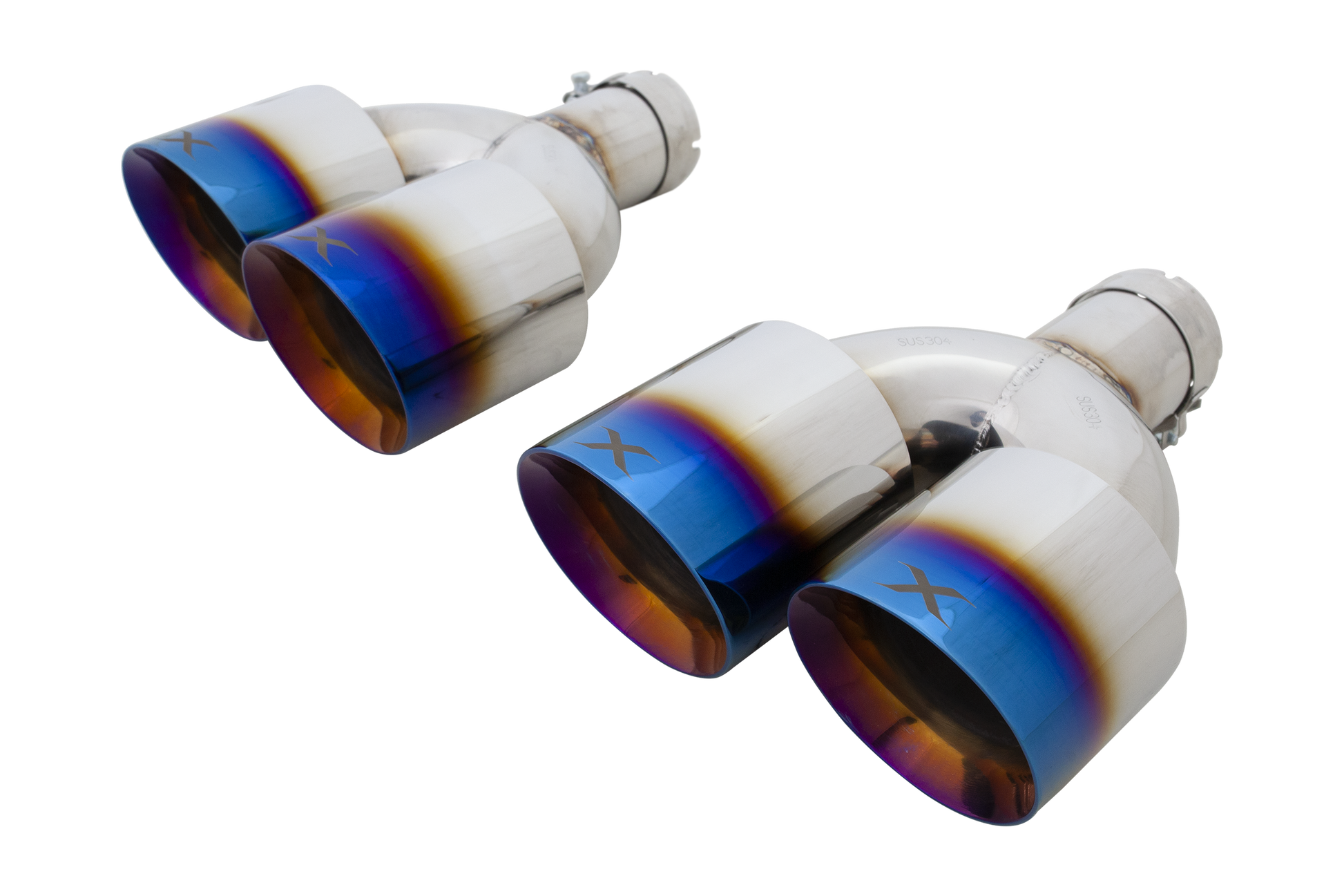 Upgrade the appearance of your Xforce equipped MK8 Golf R with our striking Burnt Blue Dual 4.5" Exhaust Tips. Featuring a 2.5" inlet and staggered dual outlets on each side, these tips are engineered to complement the factory bumper’s asymmetrical shape for a flawless OEM-plus look.